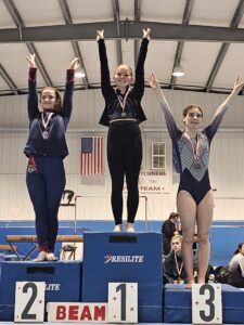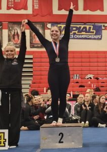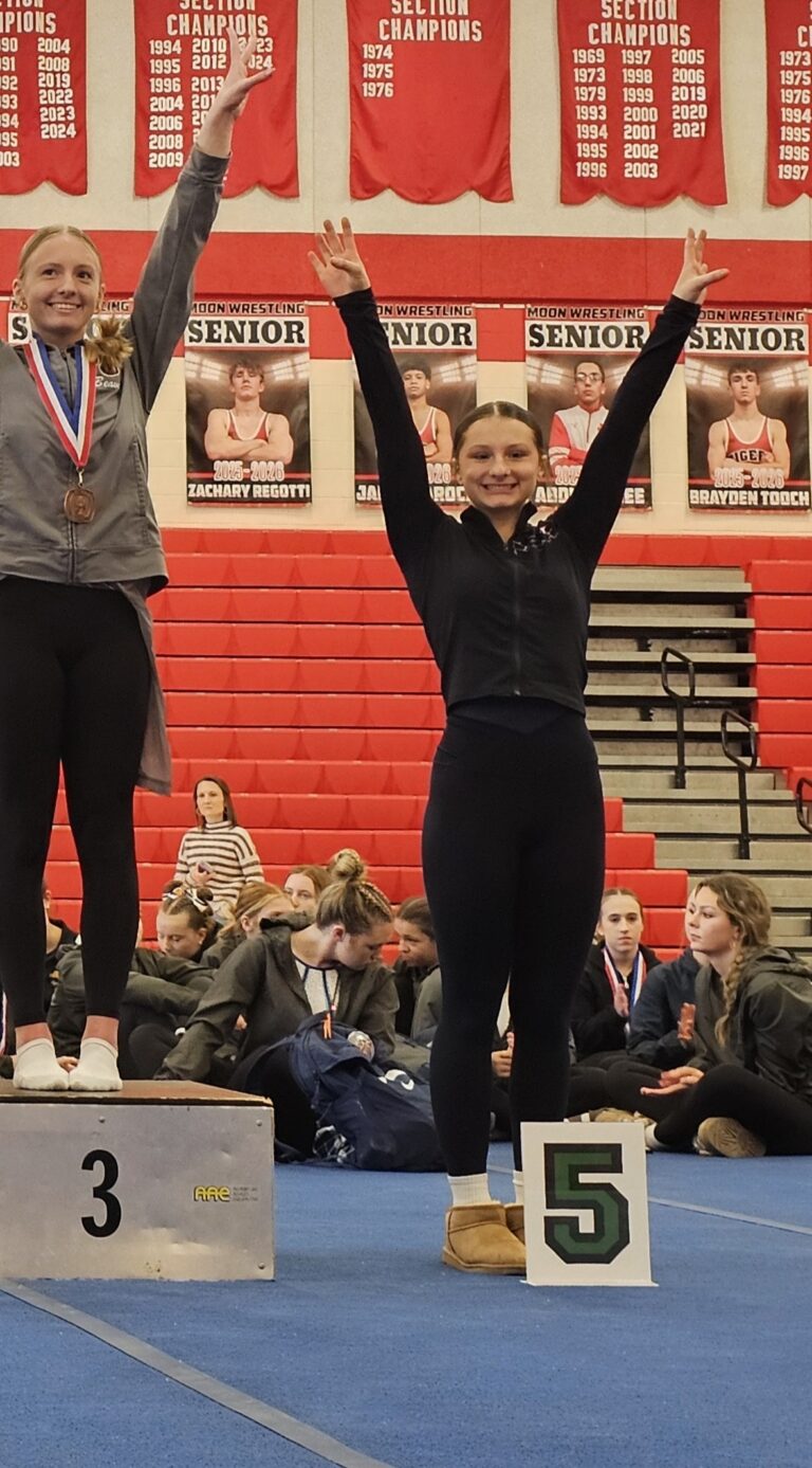 At the WPIAL Championships– junior Reece Jesko finished 5th in the All-Around in the Intermediate II (Silver) division. Freshman Makenzie Zupsic placed 2nd on Bars in the Intermediate I (Gold) division.