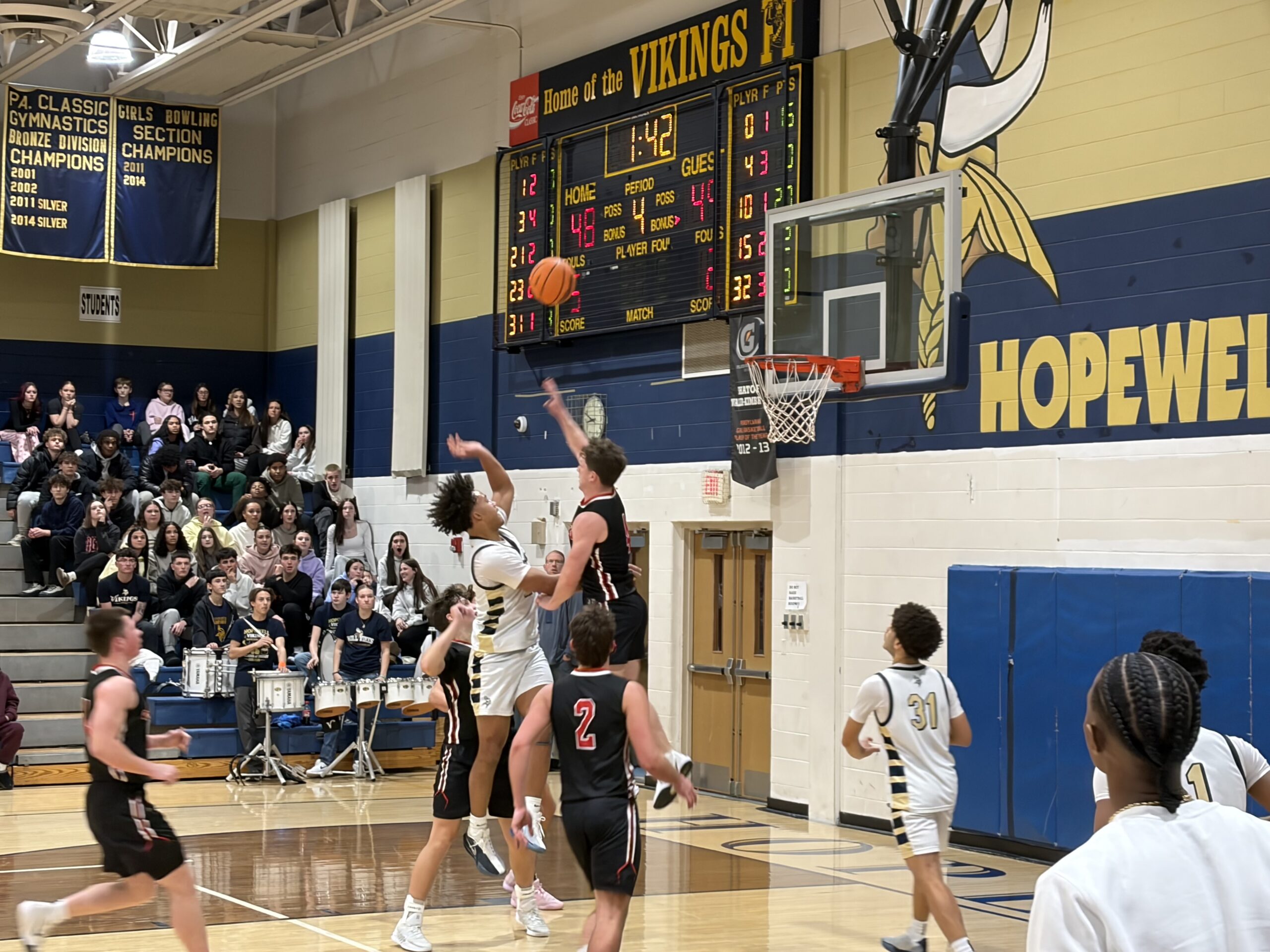 The Vikings found their rhythm in the second quarter, highlighted by Shegog finishing a strong inbounds play for an and-one and Tre Cameron attacking the baseline for a floater and a foul. Cameron stayed active on the glass, scoring off a put-back, while Rock calmly converted at the free-throw line. Hopewell’s balanced scoring and physical play helped them take a 23–20 lead into halftime.