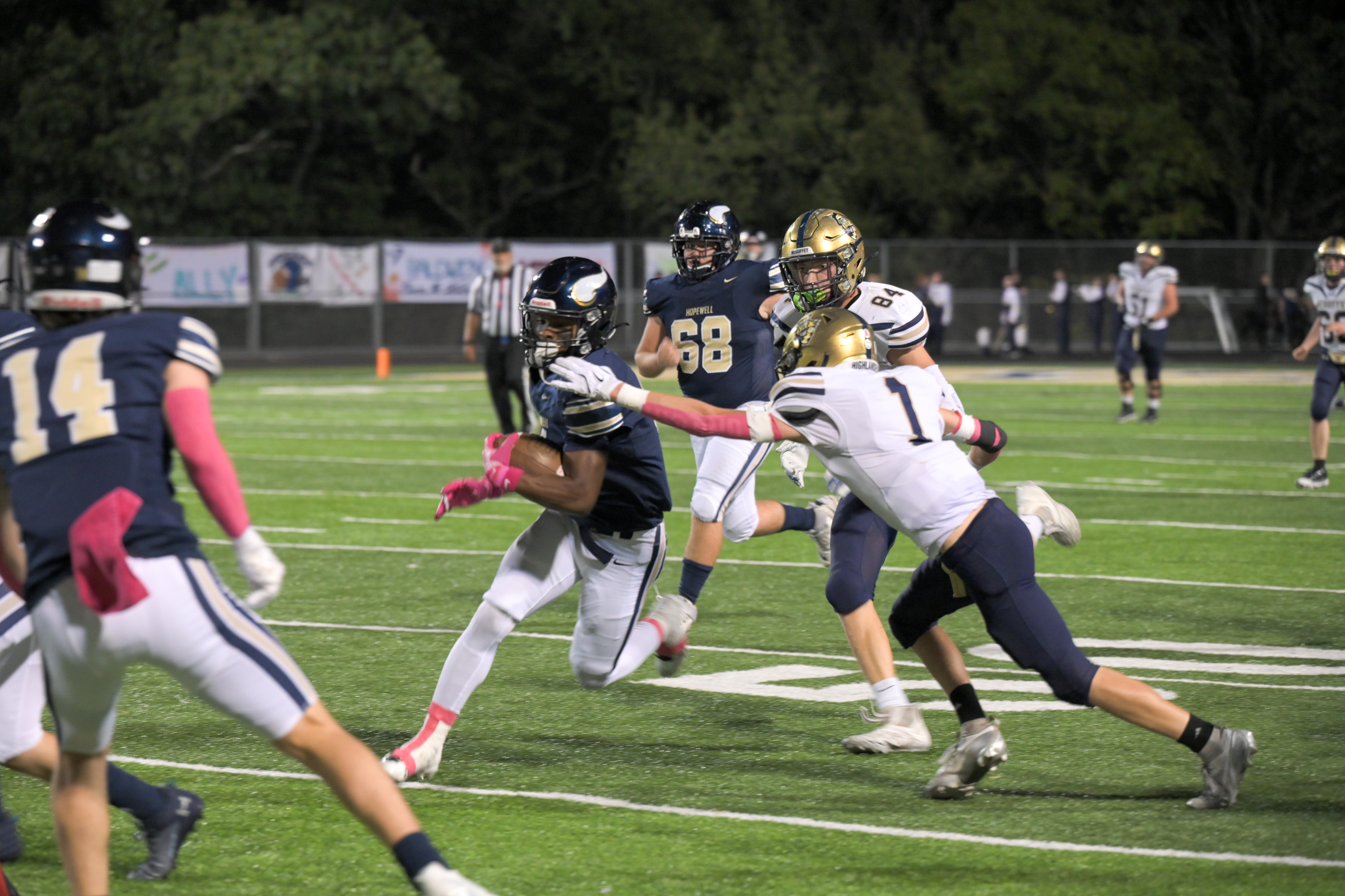 Vikings Sports Now’s photographer Devon Gabauer was at Tony Dorsett last night and put together this photo gallery from Hopewell’s record-breaking 63-0 win over McGuffey.