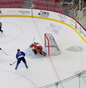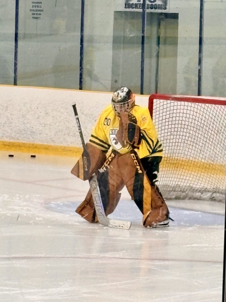 This was Smith’s first win as a goaltender in the PIHL league. Way to go Brelyn!
